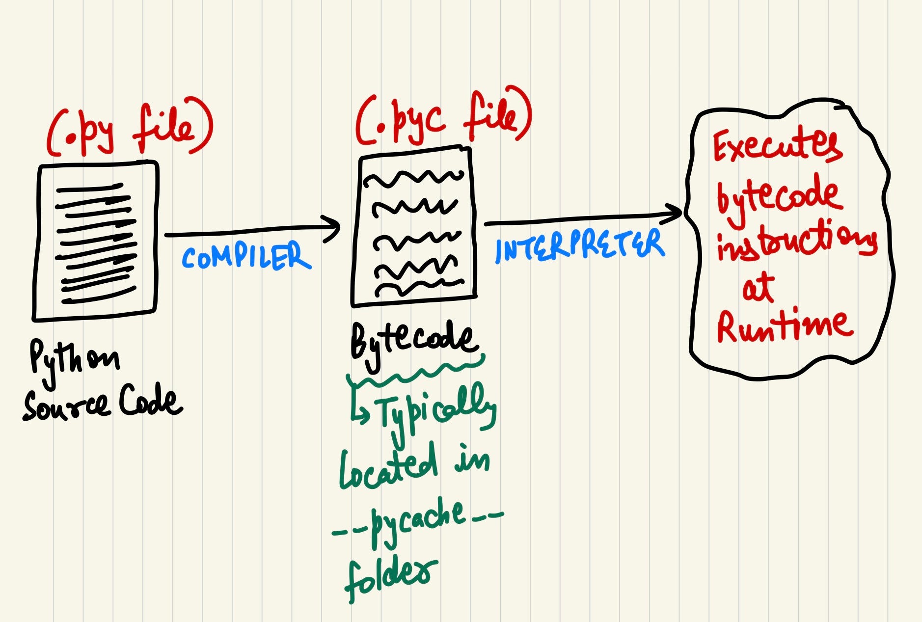 Storage: The bytecode is saved in a .pyc file (or in memory) for future execution. This bytecode is what CPython’s interpreter then runs to execute the program.