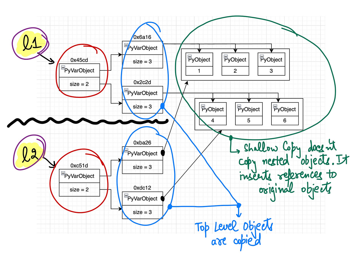 However, if we apply this on a nested list, the nested objects won’t get copied. Here’s the example :