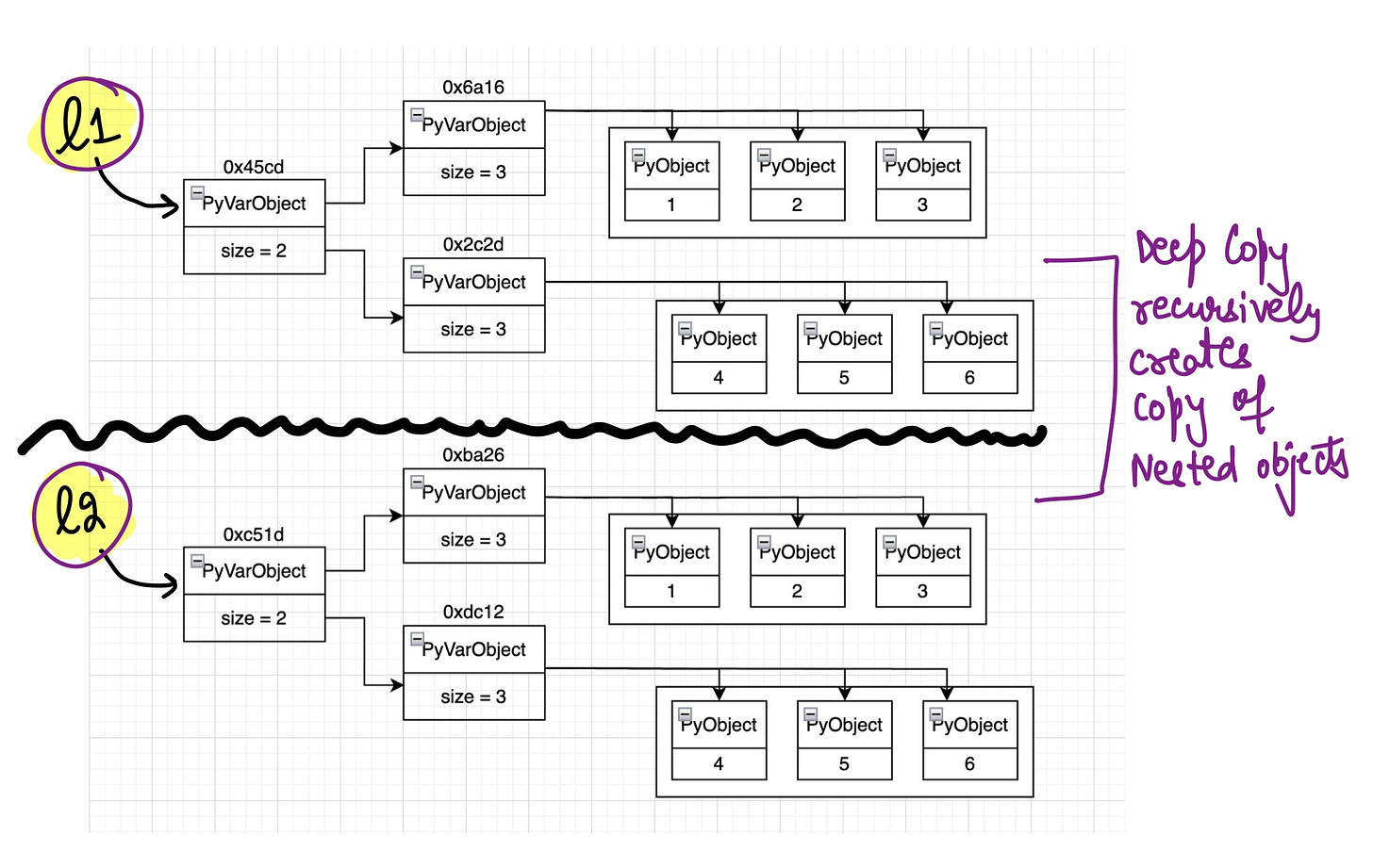 Even if we apply this on a nested list, all the nested objects get copied. Here’s the example :