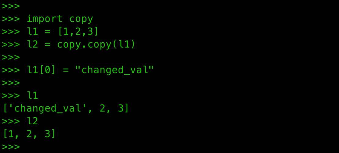 This is done using the deepcopy method from copy module. Here’s the example on a simple 1D list :